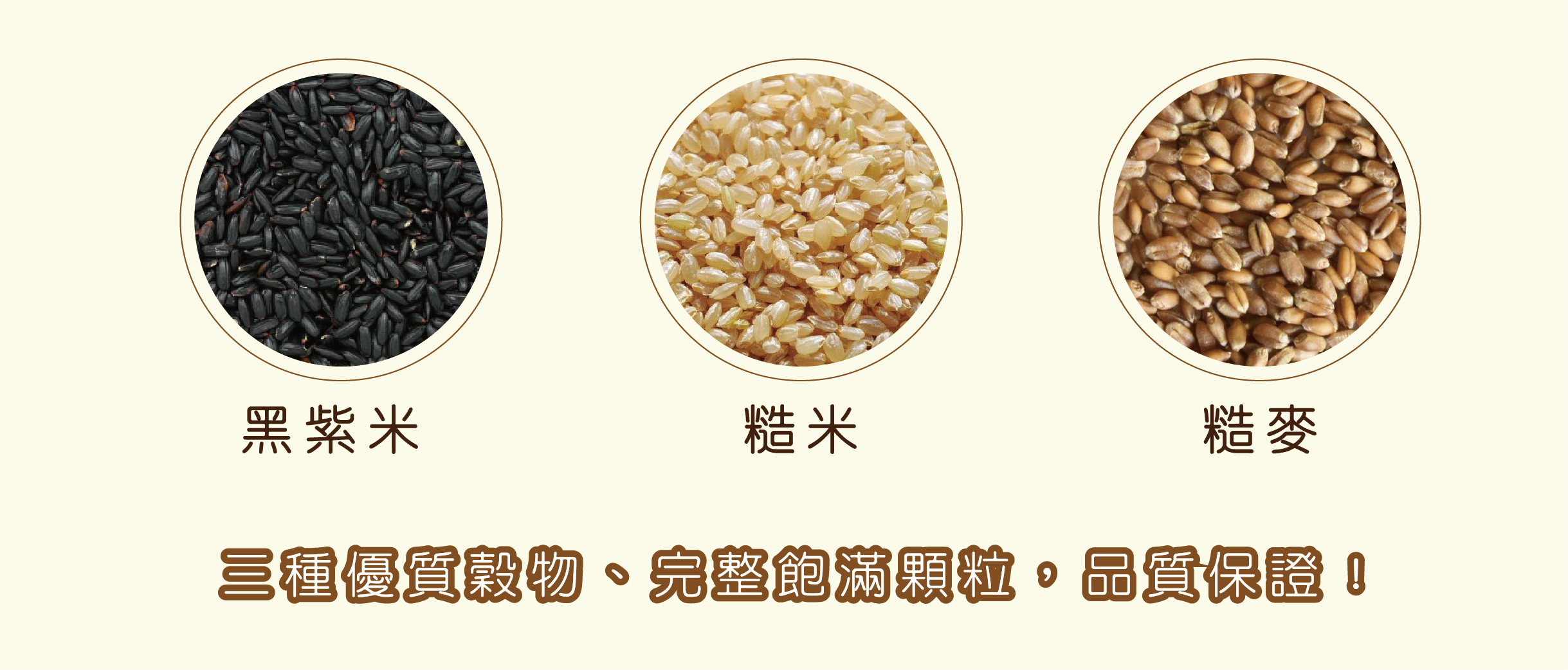 成份 糙米、紫米、小麥、麥芽、海藻糖、糖、棕櫚油(非氫化植物油)、